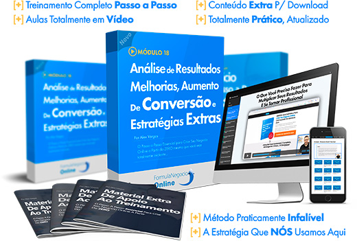 potencial extremo e muito acima da média do Treinamento Fórmula Negócio Online é porque eu realmente te levo pela mão passo a passo em tudo o que você precisa para criar seu negócio na internet a partir do zero, usando o método mais rápido, mais simples e que da mais resultados hoje.