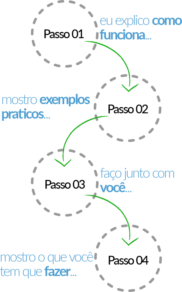 DIFERENCIAL EXTRA: Criei um passo a passo prático (aplicação 100% prática) totalmente em vídeo aulas curtas de todo o método apresentado, ou seja, um resumo de tudo o que você tem que fazer para ver os resultados.